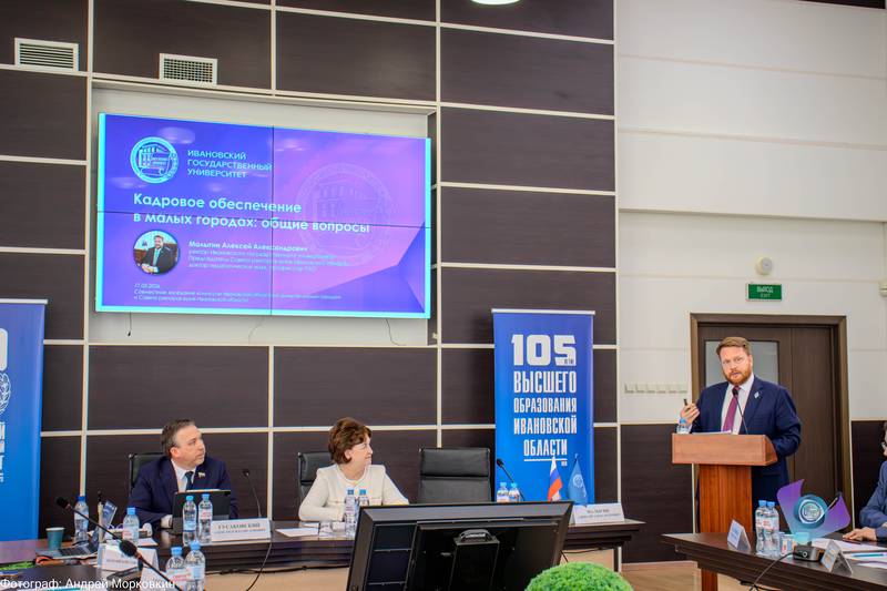 Ключевыми стали выступления председателя Совета ректоров вузов Ивановской области, ректора ИвГУ Алексея Малыгина на тему «Кадровое обеспечение в малых городах: общие вопросы» и ректора Ивановского государственного политехнического университета Елены Никифоровой с докладом «Кадровое обеспечение в малых городах. Подготовка кадров для сферы креативных индустрий».